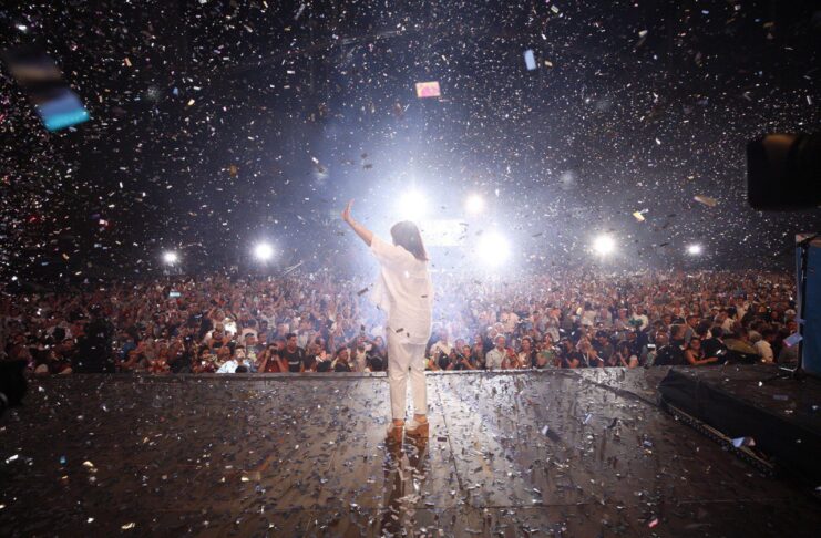 Alrededor de una hora duró “la misa” encabezada por Cristina. El cierre, hecho poco antes de las 20.45, se hizo entre fuegos artificiales y canciones de alto prestigio popular, como el clásico “Jijiji”, de Patricio Rey y sus Redonditos de Ricota.