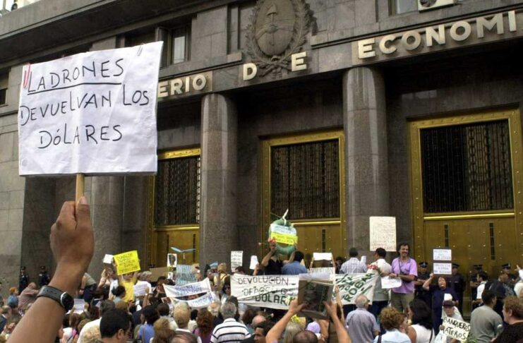 Por otro lado, en 2001 el desempleo alcanzó niveles récord, con aumento de la pobreza y la desigualdad social. Surgieron entonces medidas gubernamentales desesperadas para intentar controlar la situación, como por ejemplo el corralito, que limitaba la cantidad de dinero que se podía retirar semanalmente de las cuentas bancarias. Esta situación repercutió en 2002 y provocó gran indignación social y masivas protestas debido a que muchas personas perdieron sus ahorros o no podían acceder a su dinero para pagar deudas o simplemente subsistir.