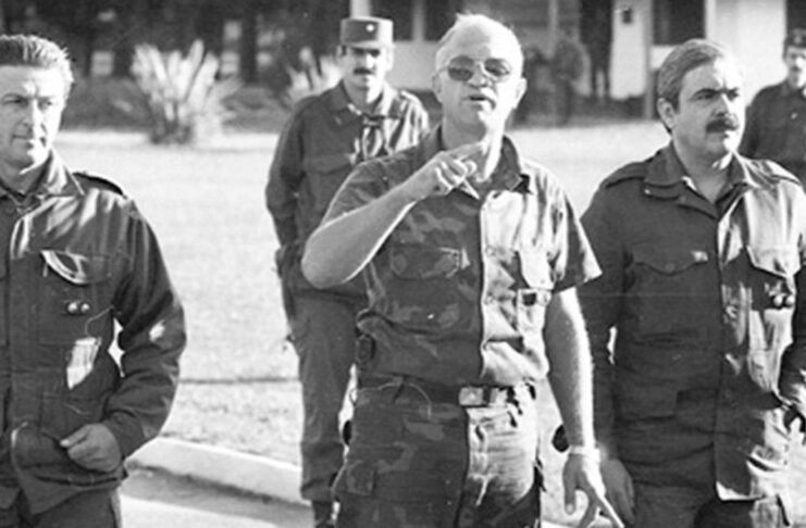En la Semana Santa de 1987, el teniente coronel Aldo Rico encabezó el primer levantamiento carapintada en contra del gobierno de Raúl Alfonsín. El 16 de abril los sublevados tomaron la Escuela de Infantería de Campo de Mayo. Los militares pedían una “solución política” para poner fin a los enjuiciamientos a las Juntas Militares de la dictadura, cuyos integrantes estaban acusados de haber cometido delitos de lesa humanidad. Aldo Rico comandó el levantamiento junto con Enrique Venturino, Gustavo Breide Obeid y Juan José Gómez Centurión.