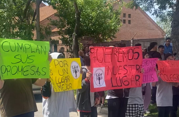 Eloy, un estudiante de la Escuela N° 45, contó a Publicable el motivo de la protesta: “La escuela en la que va a votar el candidato a presidente es primaria y a su vez funciona como escuela secundaria. Nos comparten cuatro aulas y el resto estudia en aulas modulares, que es muy difícil porque no son efectivas, hace mucho calor o mucho frío”.