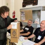 Javier Milei votó entre empujones, otra vez