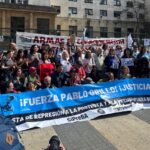 El fotoperiodista fue homenajeado afuera de los tribunales de Comodoro Py mientras el cabo Héctor Guerrero declaraba en indagatoria por haberle disparado una granada de gas de forma “antirreglamentaria”. (FOTOS: Candela Quiroga)